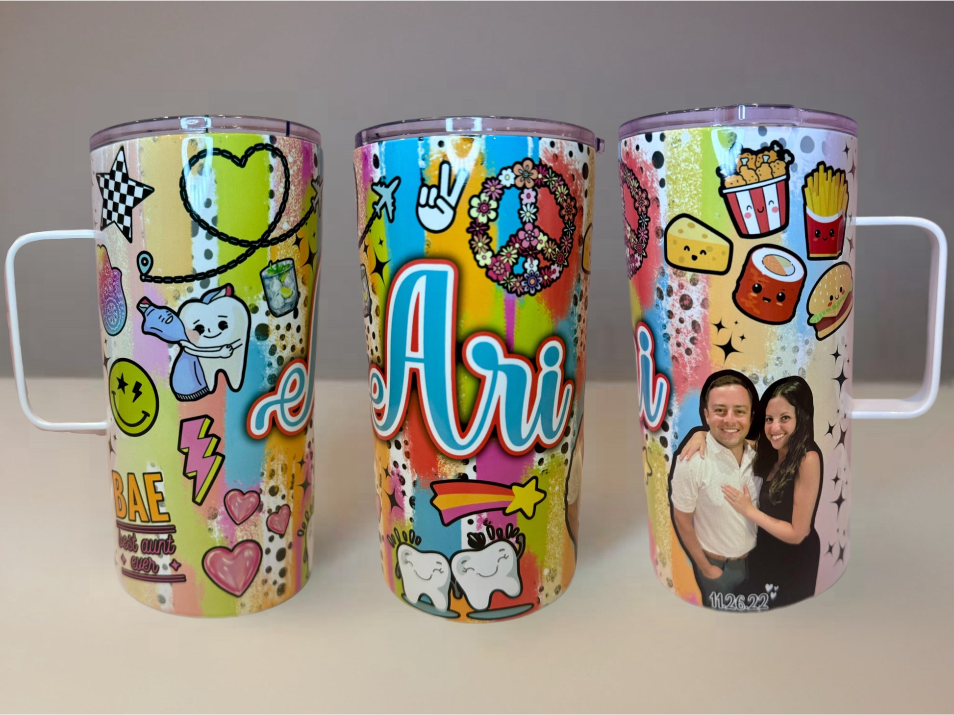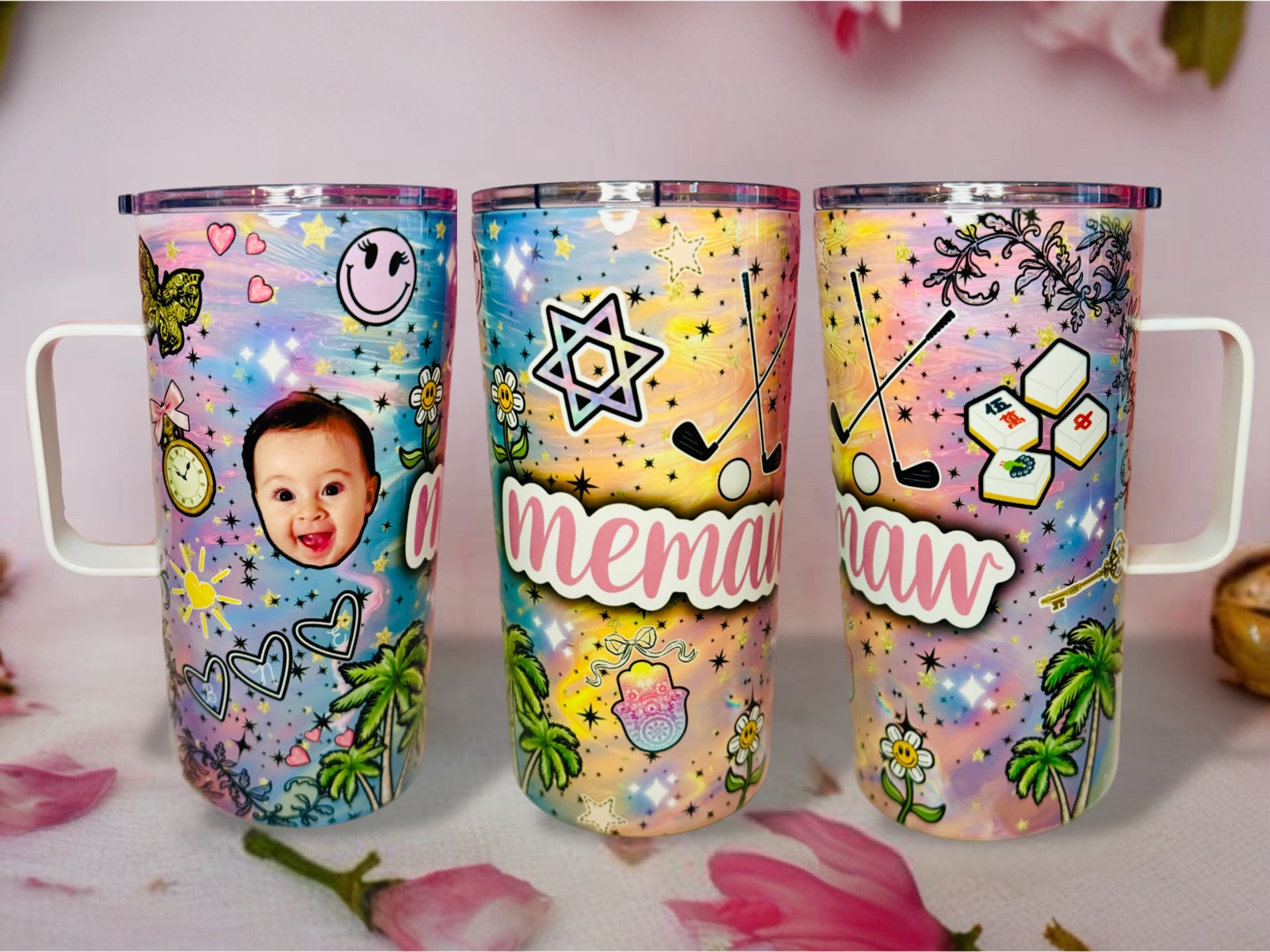 Please indicate in the text box above what you would like on your tumbler, including background images, colors, words, and any images you may want. Please email any photos that you would like included to orders@lcccustomcreations.com!